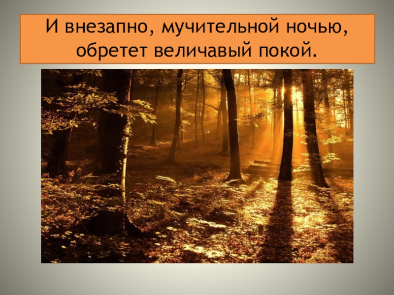 Слайд 8 И внезапно, мучительной ночью, обретет величавый покой.