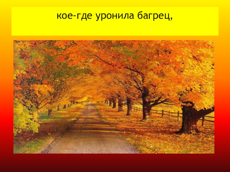 Слайд 5кое-где уронила багрец,
