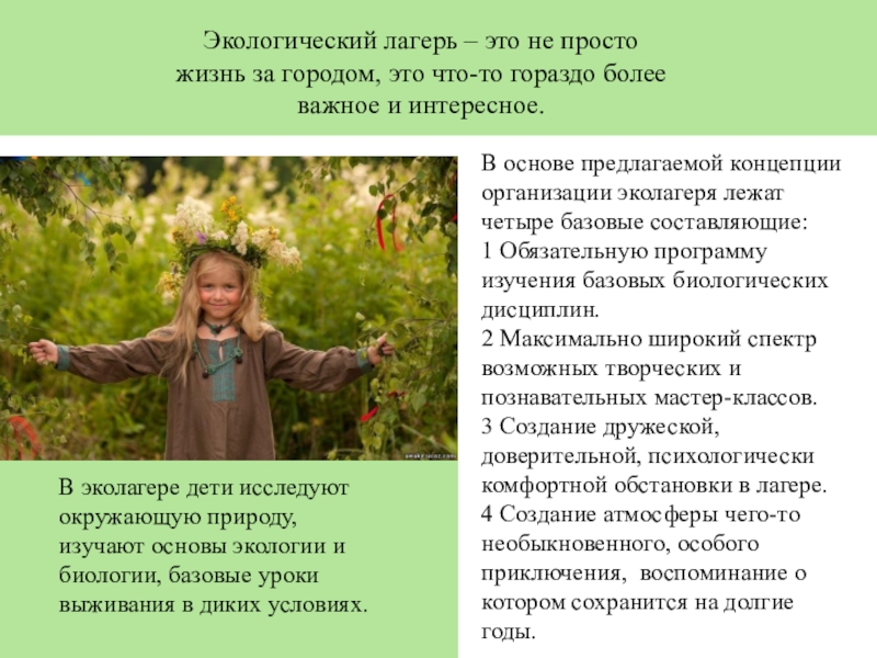 В эколагере дети исследуют окружающую природу, изучают основы экологии и биологии, базовые уроки выживания в диких условиях.