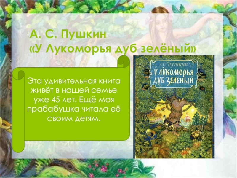А. С. Пушкин  «У Лукоморья дуб зелёный»Эта удивительная книга живёт в нашей семье уже 45 лет.