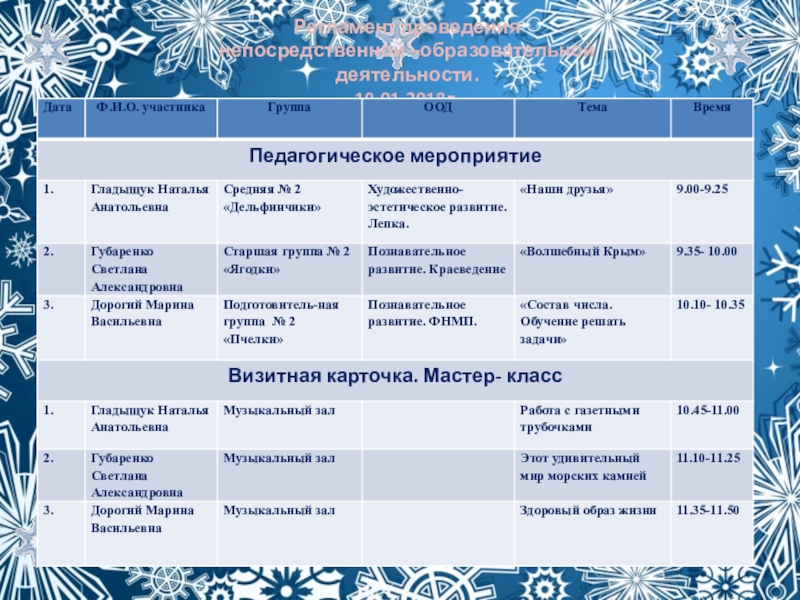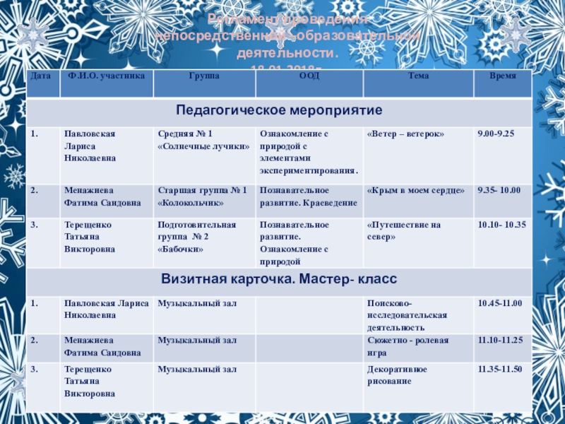 Регламент проведения непосредственной –образовательной деятельности. 19.01.2018г.