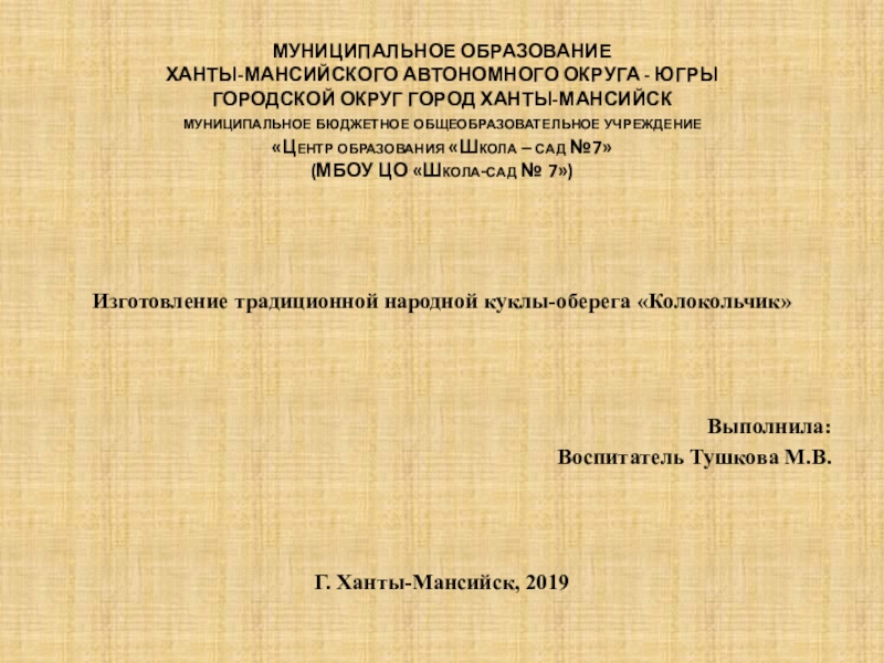 Изготовление традиционной народной куклы-оберега «Колокольчик»