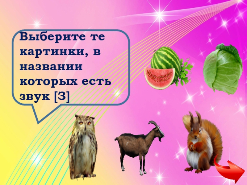 Слайд 30Выберите те картинки, в названии которых есть звук [З]