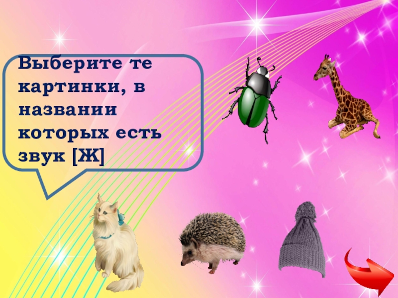 Слайд 31Выберите те картинки, в названии которых есть звук [Ж]