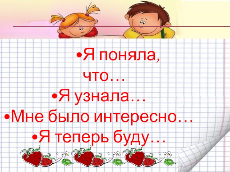 Я поняла, что…Я узнала…Мне было интересно…Я теперь буду…