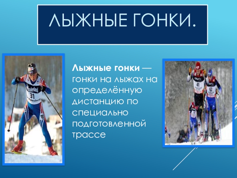 Лыжные гонки — гонки на лыжах на определённую дистанцию по специально