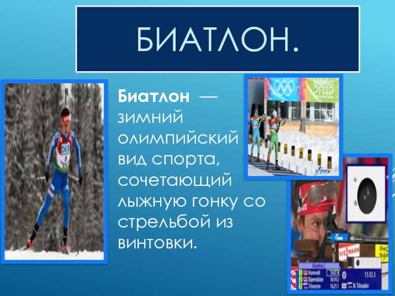 Биатлон — зимний олимпийский вид спорта, сочетающий лыжную гонку со стрельбой