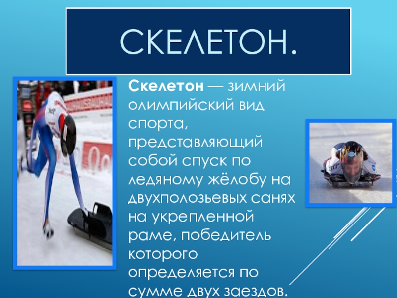 Скелетон — зимний олимпийский вид спорта, представляющий собой спуск по ледяному жёлобу