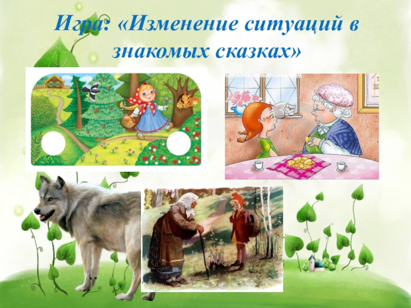 Слайд 7Игра: «Изменение ситуаций в знакомых сказках»