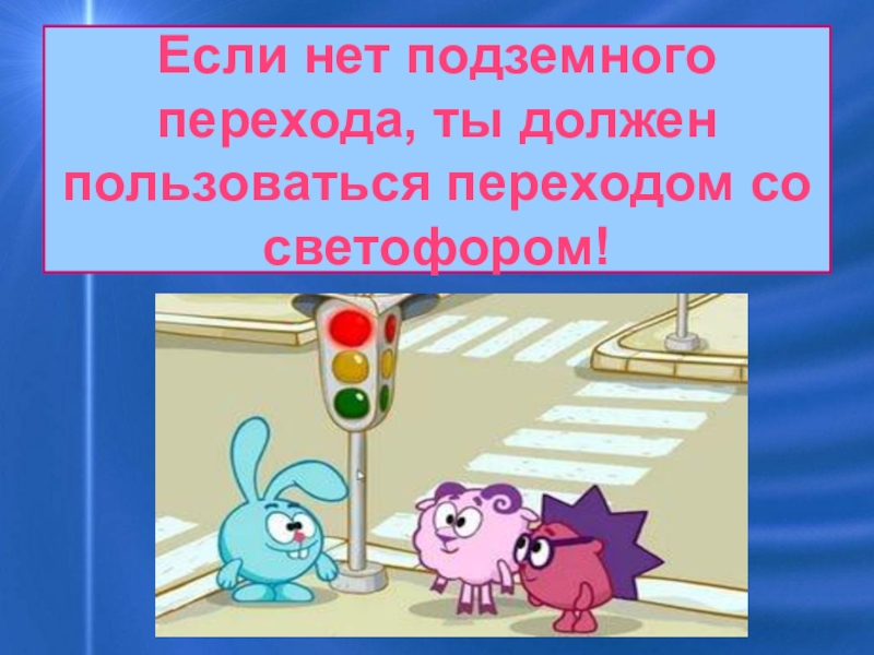 Слайд 17Если нет подземного перехода, ты должен пользоваться переходом со светофором!