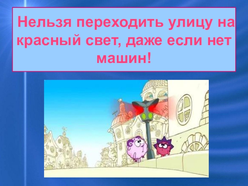 Слайд 18Нельзя переходить улицу на красный свет, даже если нет машин!