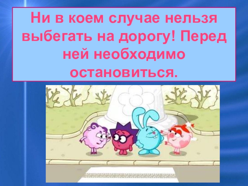 Слайд 21Ни в коем случае нельзя выбегать на дорогу! Перед ней необходимо