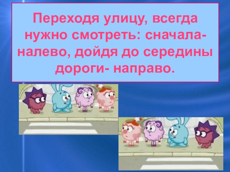 Слайд 19Переходя улицу, всегда нужно смотреть: сначала- налево, дойдя до середины дороги-
