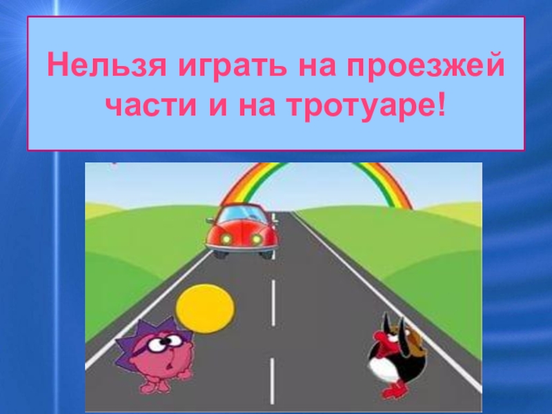 Слайд 22Нельзя играть на проезжей части и на тротуаре!