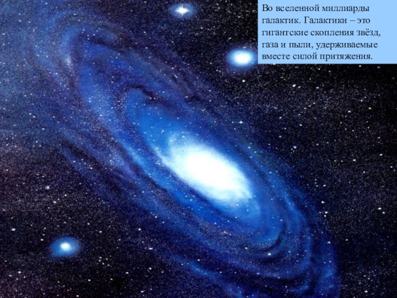 Слайд 7Во вселенной миллиарды галактик. Галактики – это гигантские скопления звёзд, газа