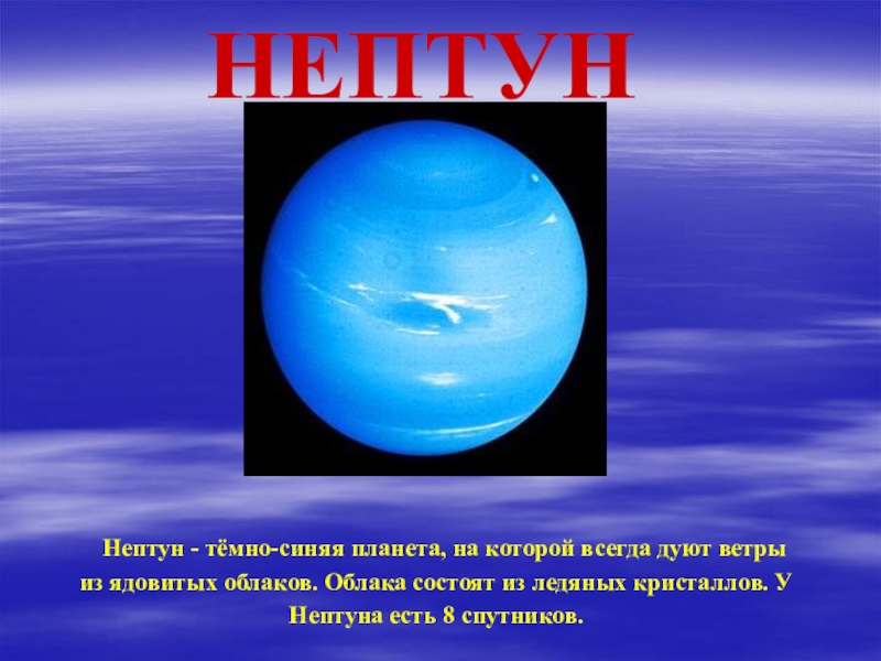 облаков. Облака состоят из ледяных кристаллов. У Нептуна есть 8 спутников.