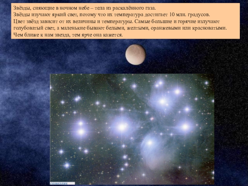 Слайд 8Звёзды, сияющие в ночном небе – тела из раскалённого газа.