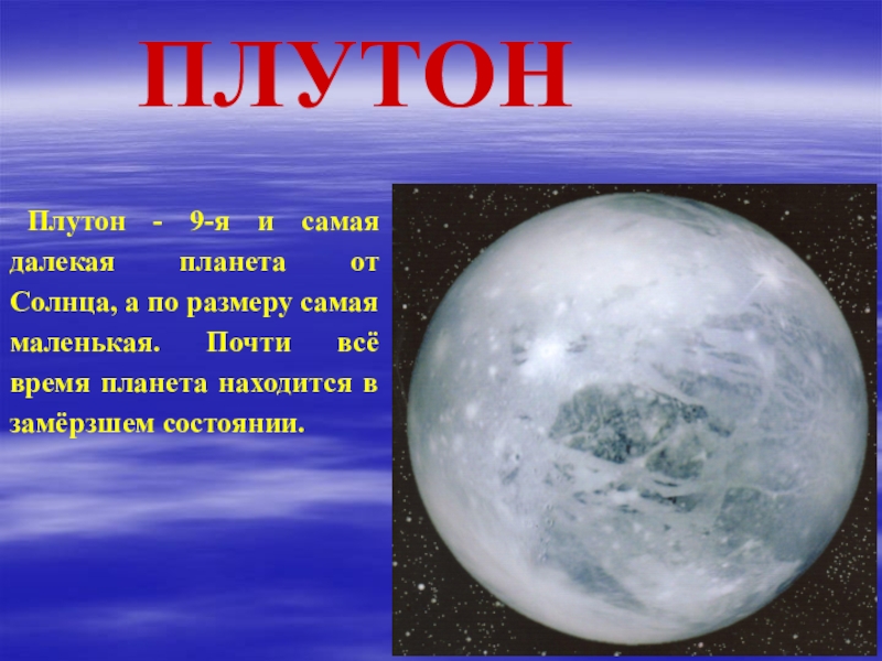 размеру самая маленькая. Почти всё время планета находится в замёрзшем состоянии.