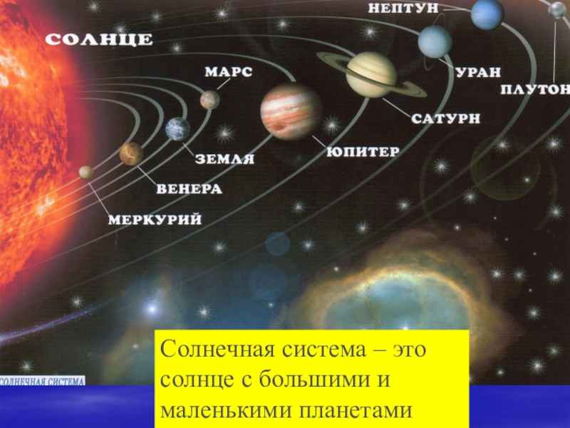 Слайд 4Солнечная система – это солнце с большими и маленькими планетами
