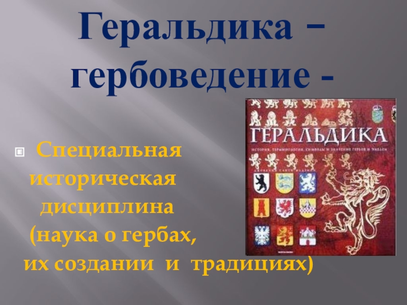 Геральдика – гербоведение - Специальная историческая  дисциплина  (наука о гербах, их создании и традициях)