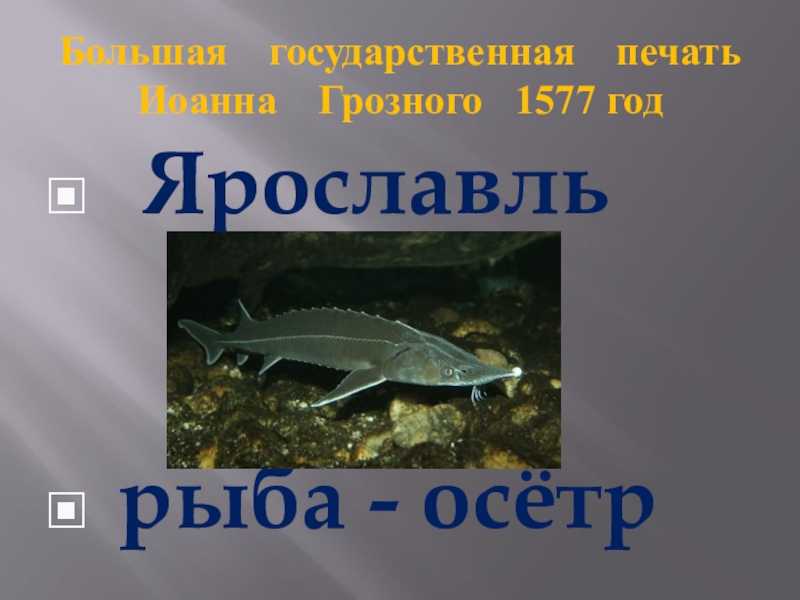 Большая  государственная  печать  Иоанна  Грозного  1577 год  Ярославль рыба - осётр