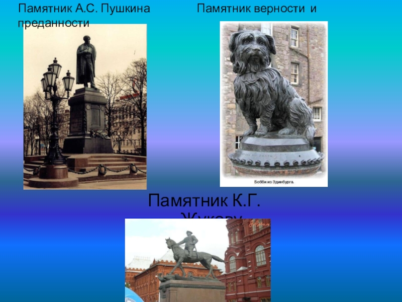 Памятник А.С. Пушкина         Памятник верности и преданностиПамятник К.Г. Жукову