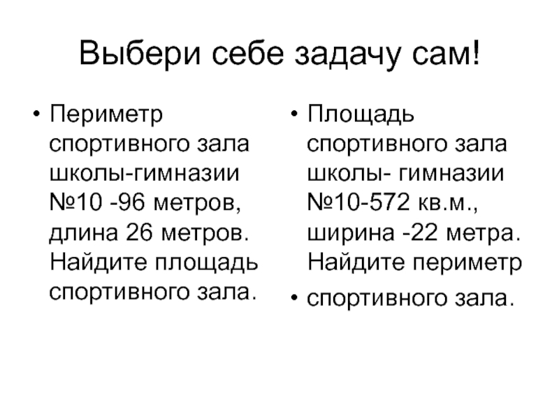 Площадь спортивного зала школы- гимназии №10-572 кв.м., ширина -22 метра. Найдите периметр