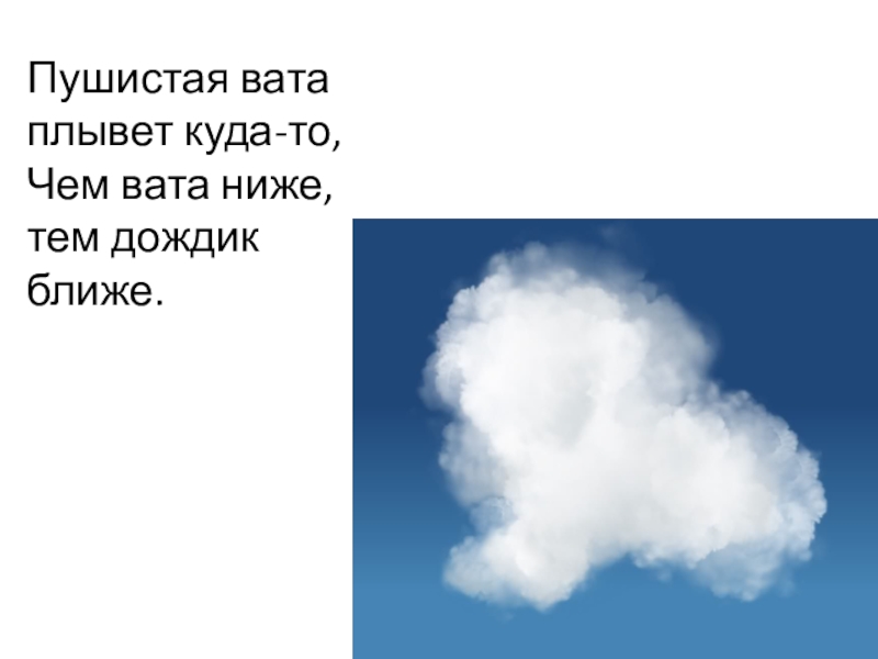Пушистая вата плывет куда-то,Чем вата ниже, тем дождик ближе.