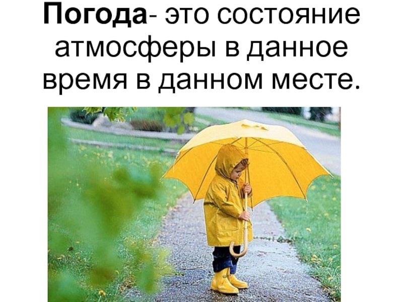 Слайд 2Погода- это состояние атмосферы в данное время в данном месте.