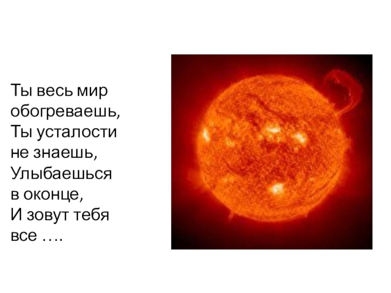 Ты весь мир обогреваешь,Ты усталости не знаешь,Улыбаешься в оконце,И зовут тебя все ….