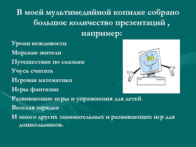 Мы применяем в своей практике готовые мультимедийные презентации в различных образовательных областях:
