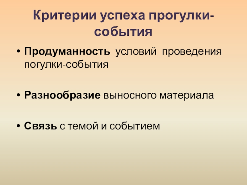 Слайд 15Критерии успеха прогулки-события
