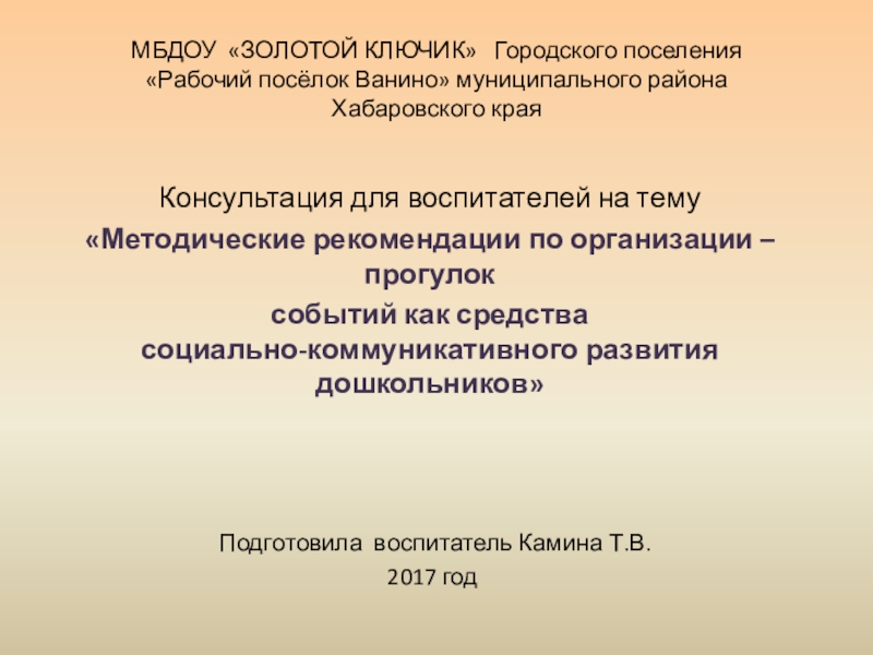 Слайд 1МБДОУ «ЗОЛОТОЙ КЛЮЧИК» Городского поселения «Рабочий посёлок Ванино» муниципального