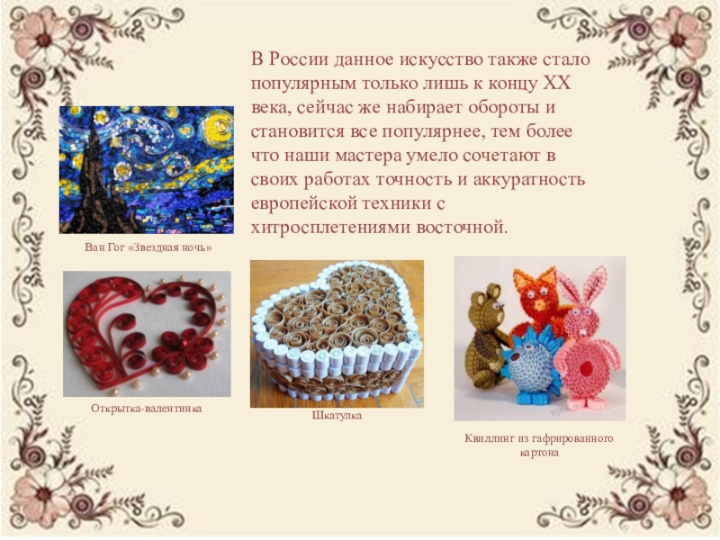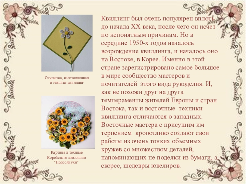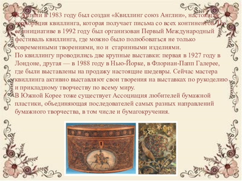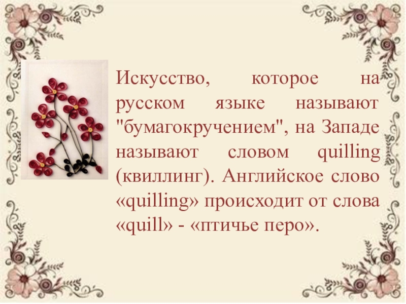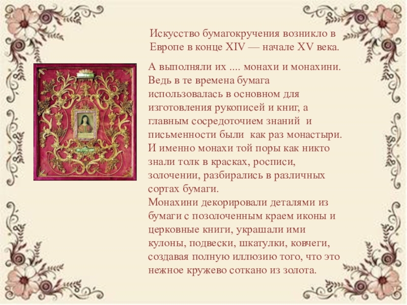Искусство бумагокручения возникло в Европе в конце XIV — начале XV века.