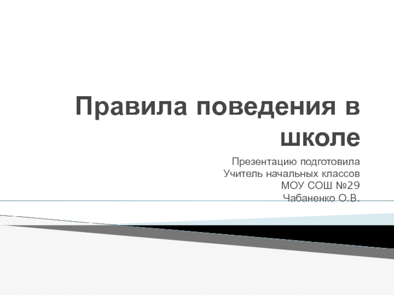 Правила поведения в школеПрезентацию подготовилаУчитель начальных классовМОУ СОШ №29Чабаненко О.В.