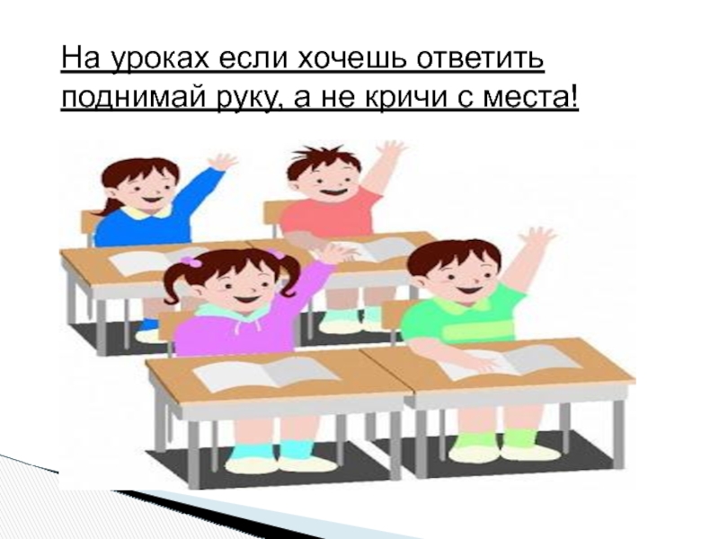 Слайд 4На уроках если хочешь ответить поднимай руку, а не кричи с