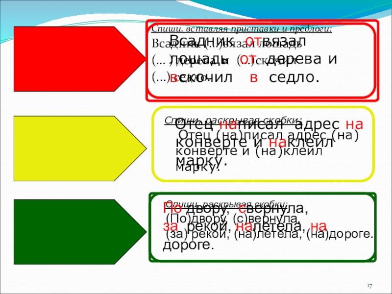 Отец (на)писал адрес (на) конверте и (на)клеил марку.