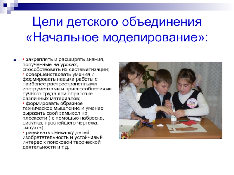 Развитие творческого потенциала младших школьников на занятиях детского объединения «Начальное моделирование».
