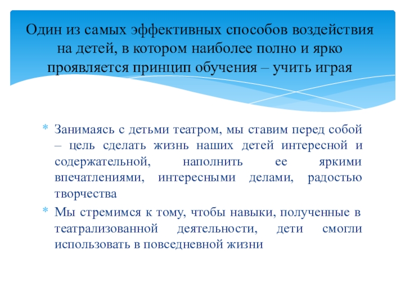 Один из самых эффективных способов воздействия на детей, в котором наиболее полно и ярко проявляется принцип обучения – учить играя