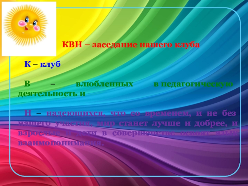 КВН – заседание нашего клубаК – клубВ – влюбленных в педагогическую деятельность иН – надеющихся, что со временем,