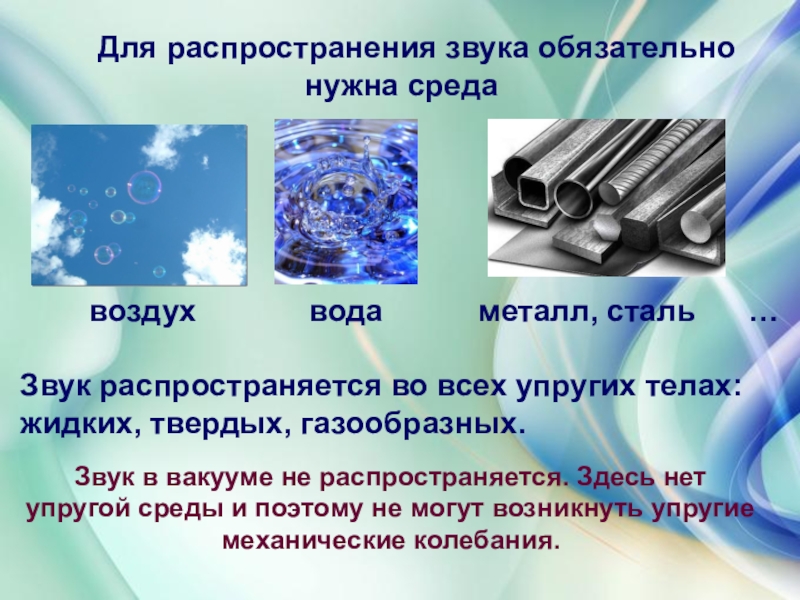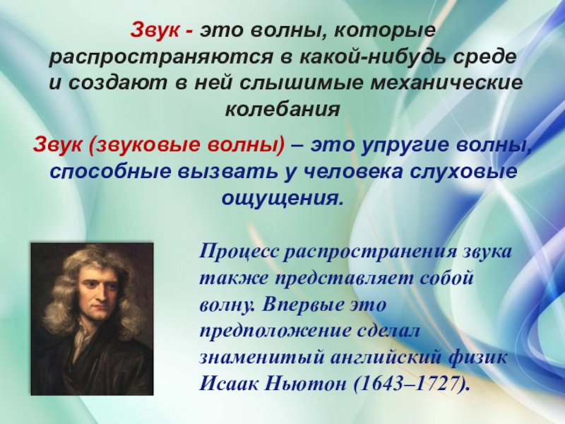 Звук (звуковые волны) – это упругие волны, способные вызвать у человека слуховые ощущения.