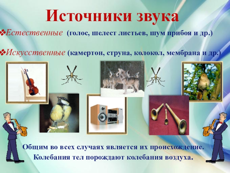 Искусственные (камертон, струна, колокол, мембрана и др.)