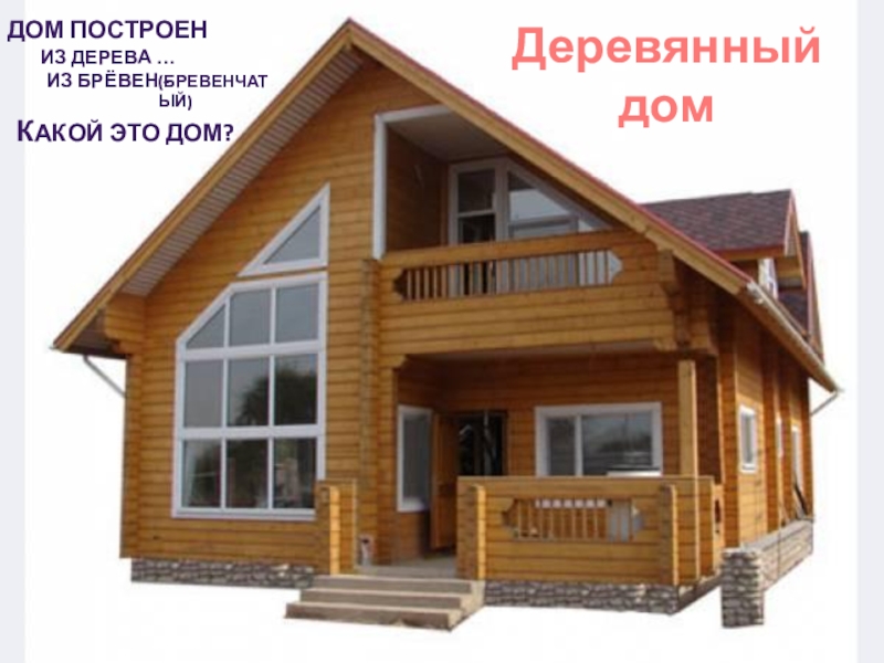 Деревянный домКакой это дом?Дом построениз дерева …Из брёвен -(бревенчатый)