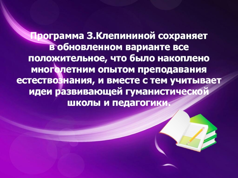 варианте все положительное, что было накоплено многолетним опытом преподавания естествознания, и вместе с тем учитывает идеи развивающей гуманистической школы и педагогики.
