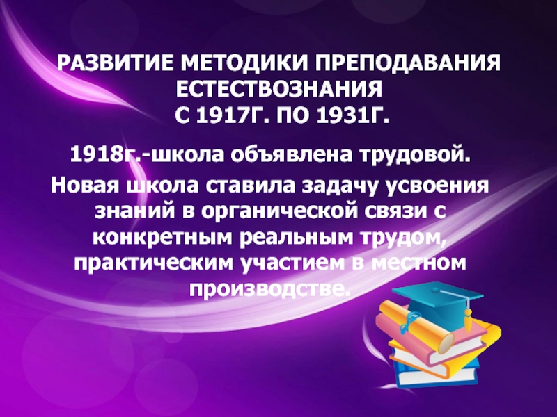 Слайд 3Развитие методики преподавания естествознания с 1917г. по 1931г.