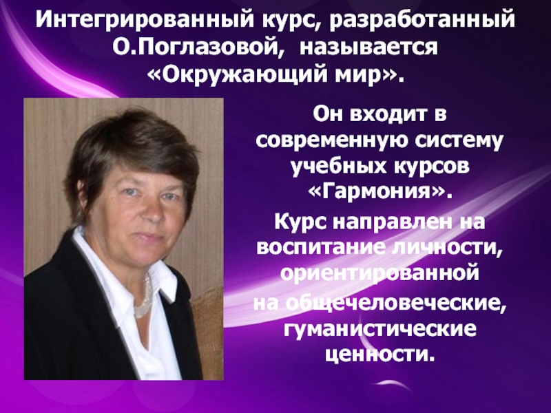 Слайд 22Интегрированный курс, разработанный О.Поглазовой, называется «Окружающий мир».