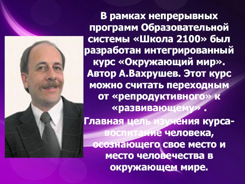курс «Окружающий мир». Автор А.Вахрушев. Этот курс можно считать переходным от «репродуктивного» к «развивающему» .