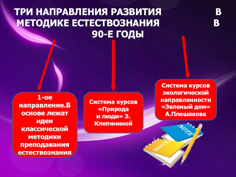 1-ое направление.В основе лежат идеи классической методики преподавания естествознания