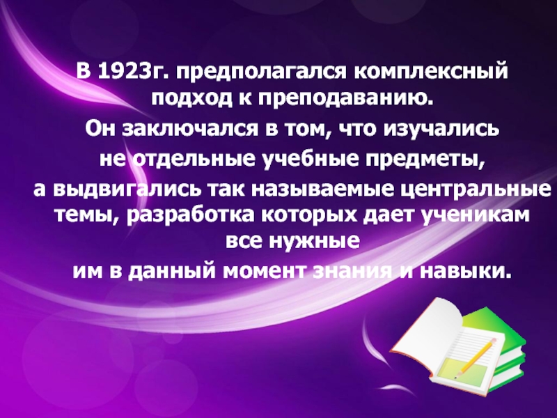 Слайд 9В 1923г. предполагался комплексный подход к преподаванию.