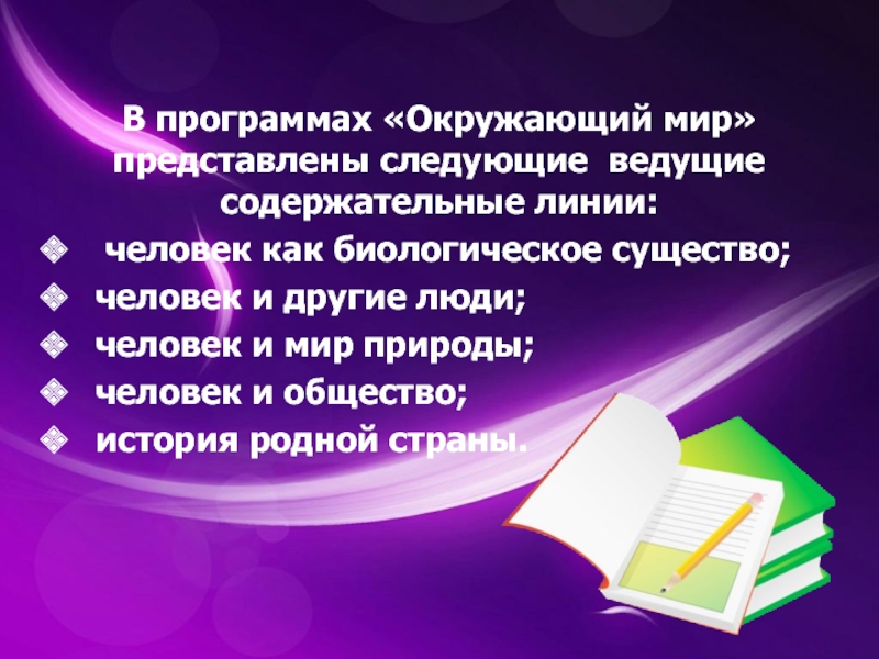 Слайд 21В программах «Окружающий мир» представлены следующие ведущие содержательные линии: